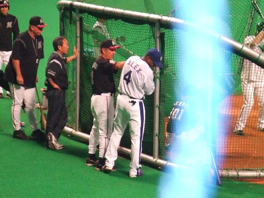 ↑試合前、ロッテの練習中、アレックスが一番に出て来て、バレンタイン監督と戯れていました笑